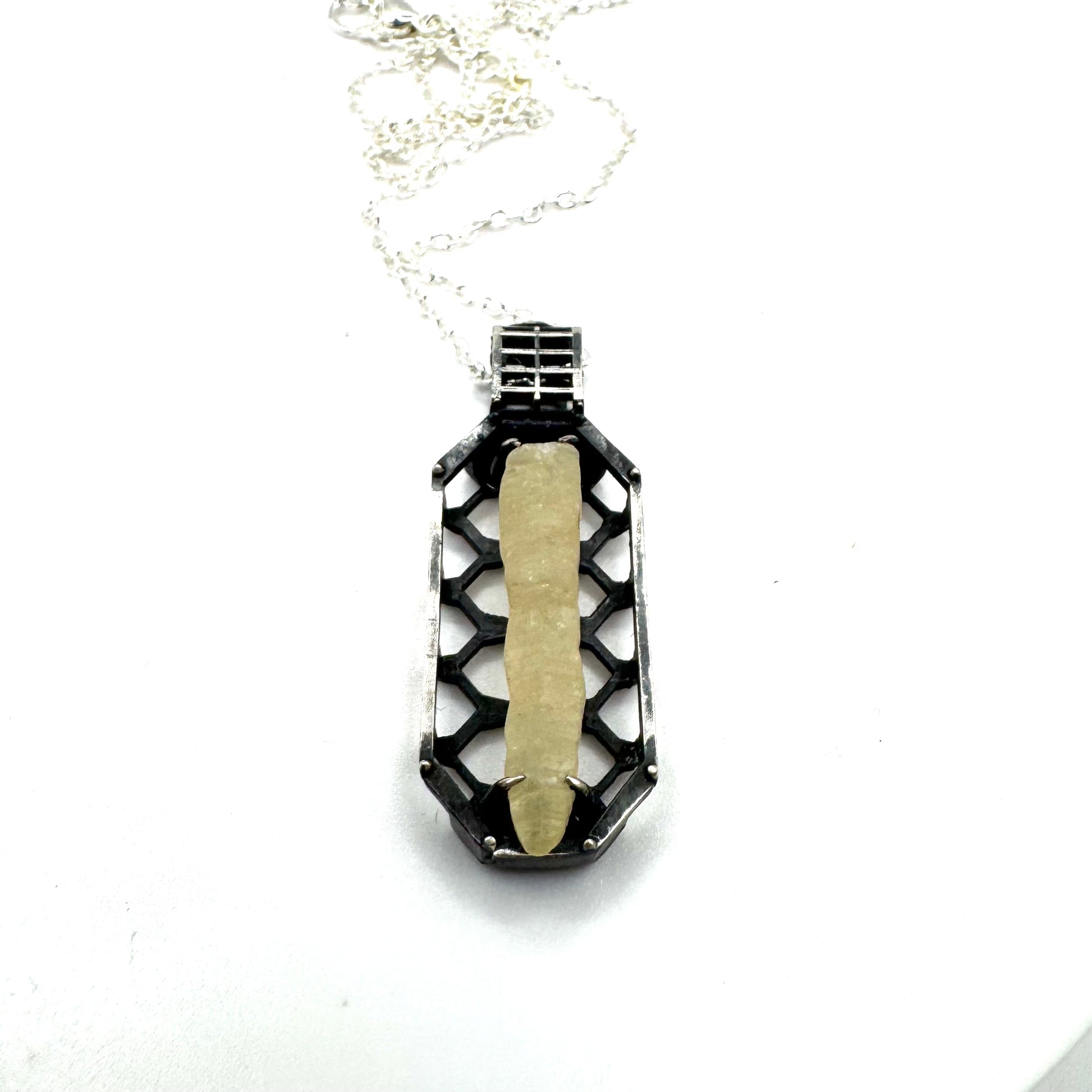 This Raw White Sapphire pendant is a unique piece, limited to just one item. It's a must-have for any jewelry collector. Inspired by ancient aliens, this ring is a true standout. Made in sterling silver.