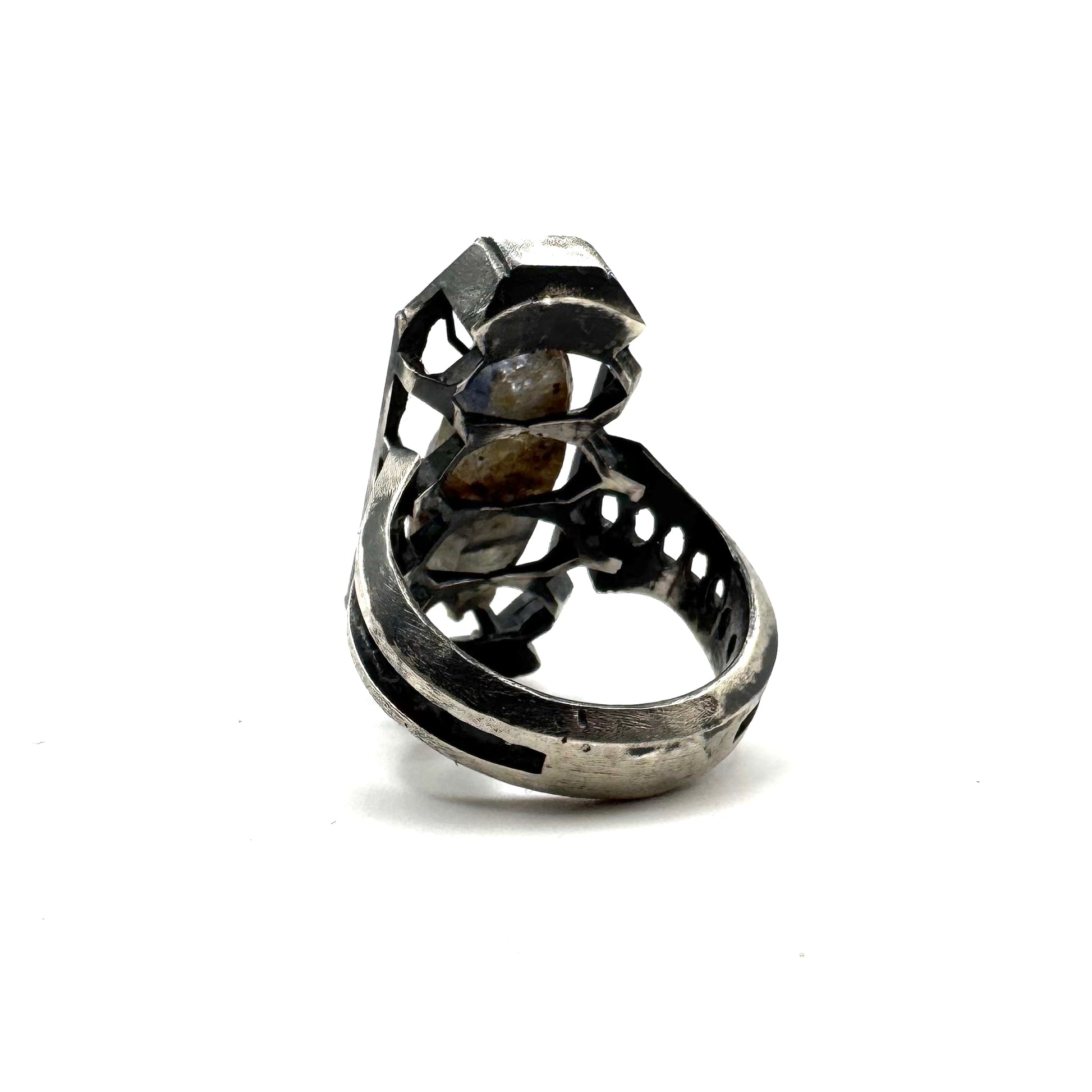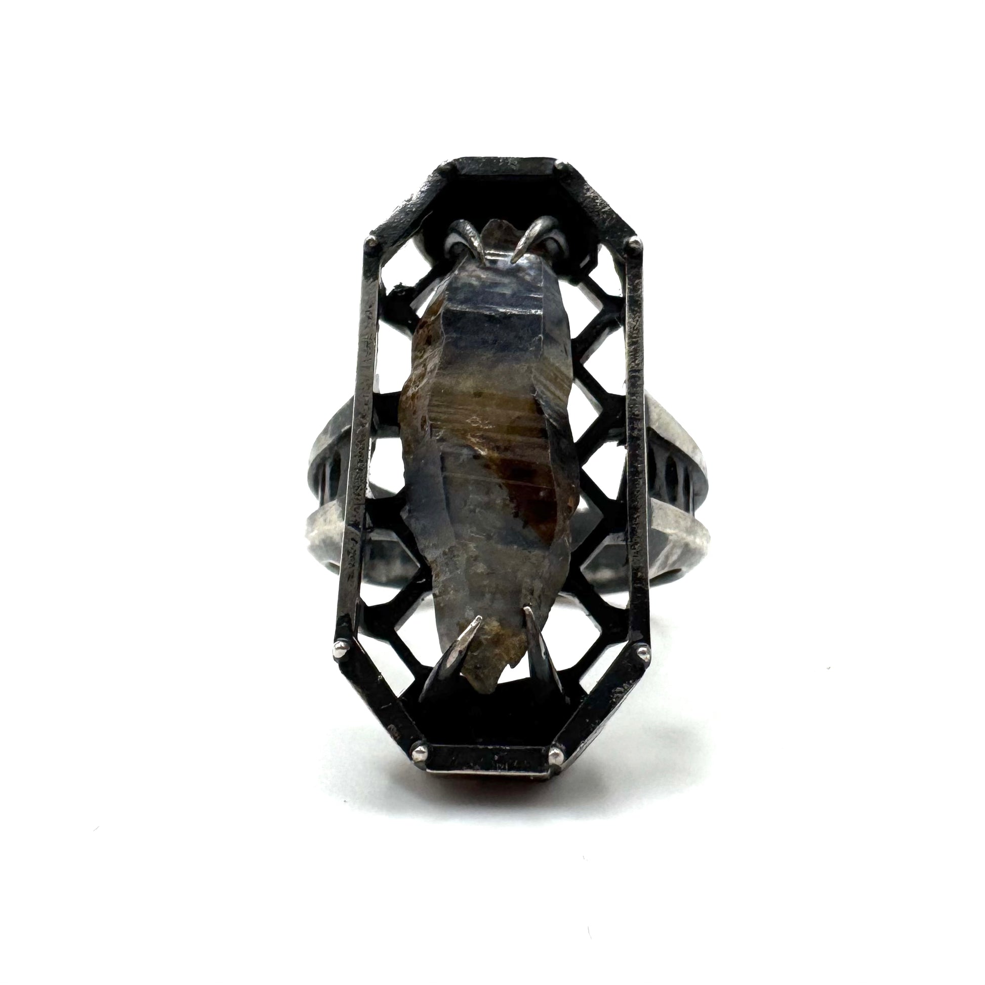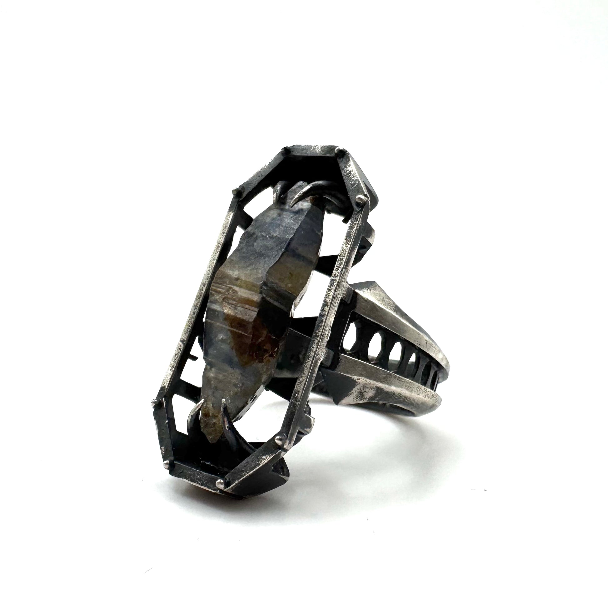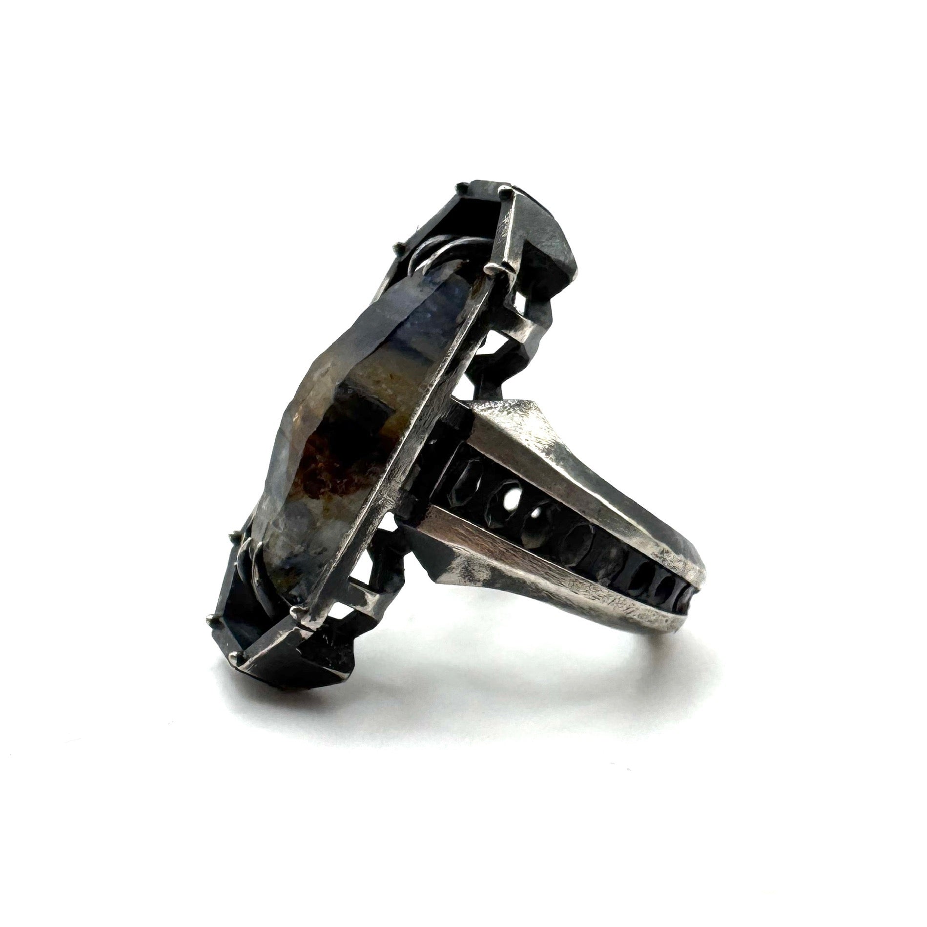 This Raw Blue Sapphire Ring is a unique piece, limited to just one item. It's a must-have for any jewelry collector. Inspired by ancient aliens, this ring is a true standout. Made in sterling silver.