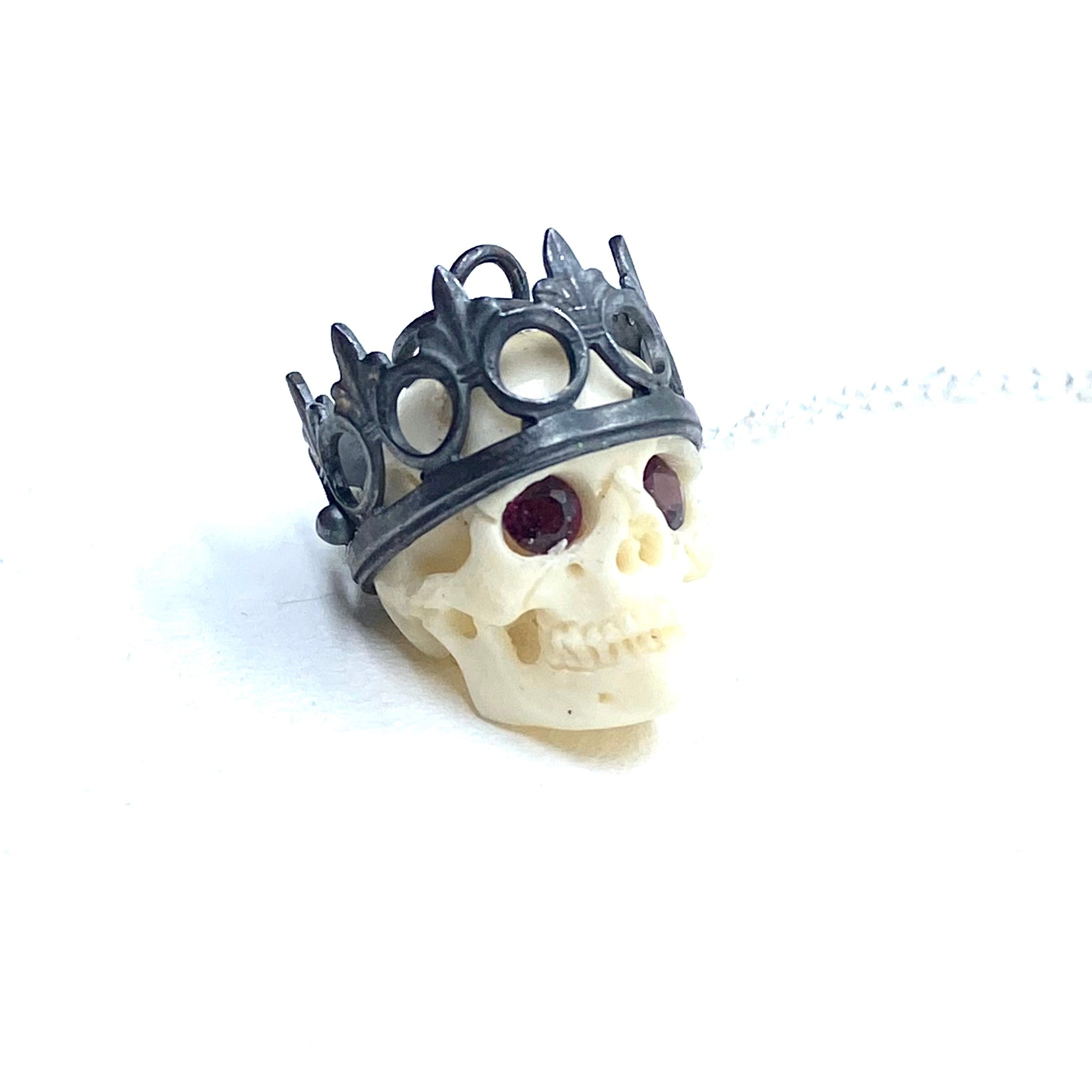 PREORDER Garnet Eyed Skull With Sterling silver Bail