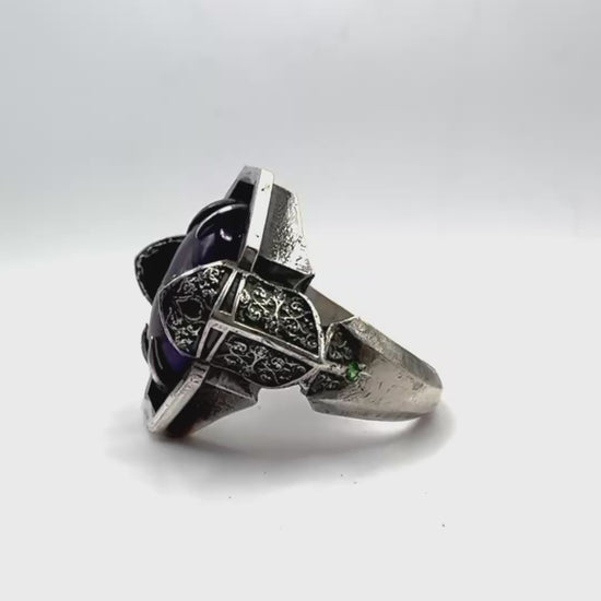 Green Knight Ring with Amethyst and Tsavorite in Sterling Silver