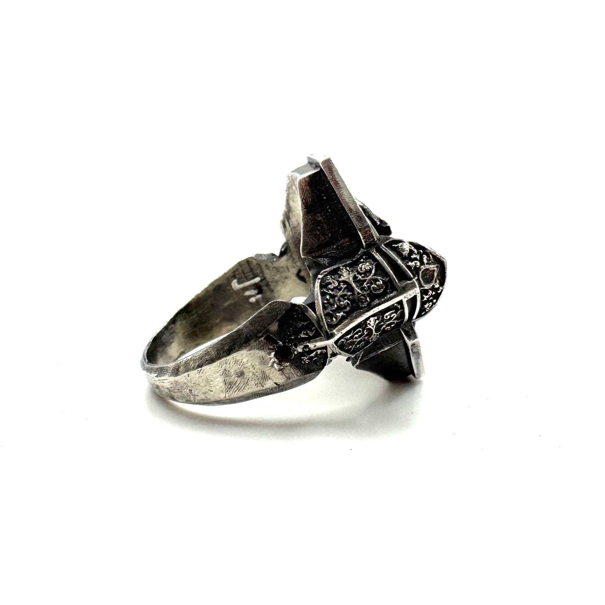 Our Green Knight Ring with chrome chalcedony and orissa garnet in Sterling Silver is a one of a kind set with this gorgeous stone. This ring is a symbol of courage and loyalty, inspired by the legend of the Green Knight.