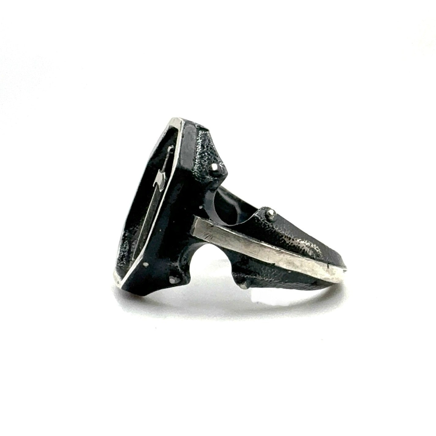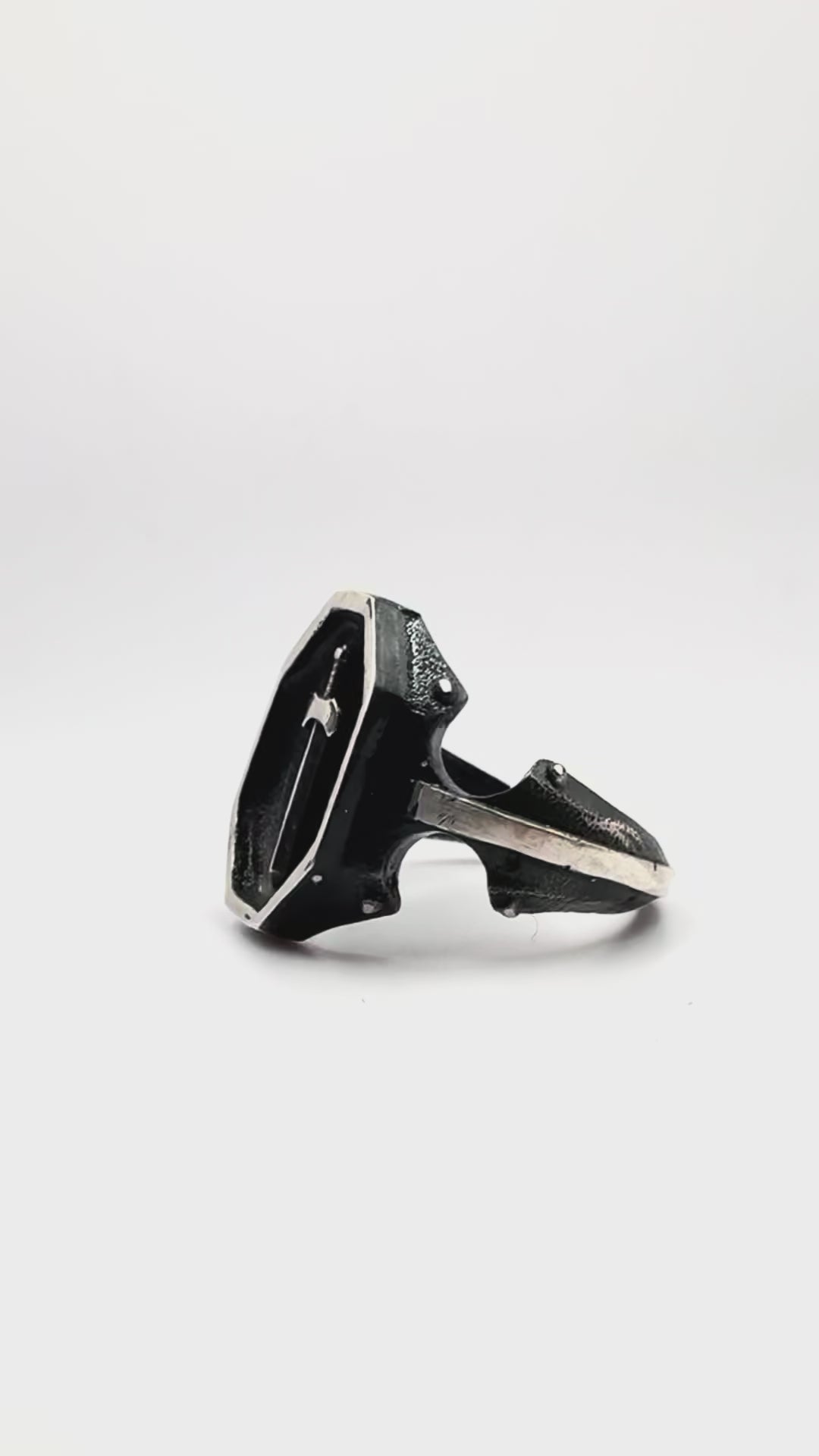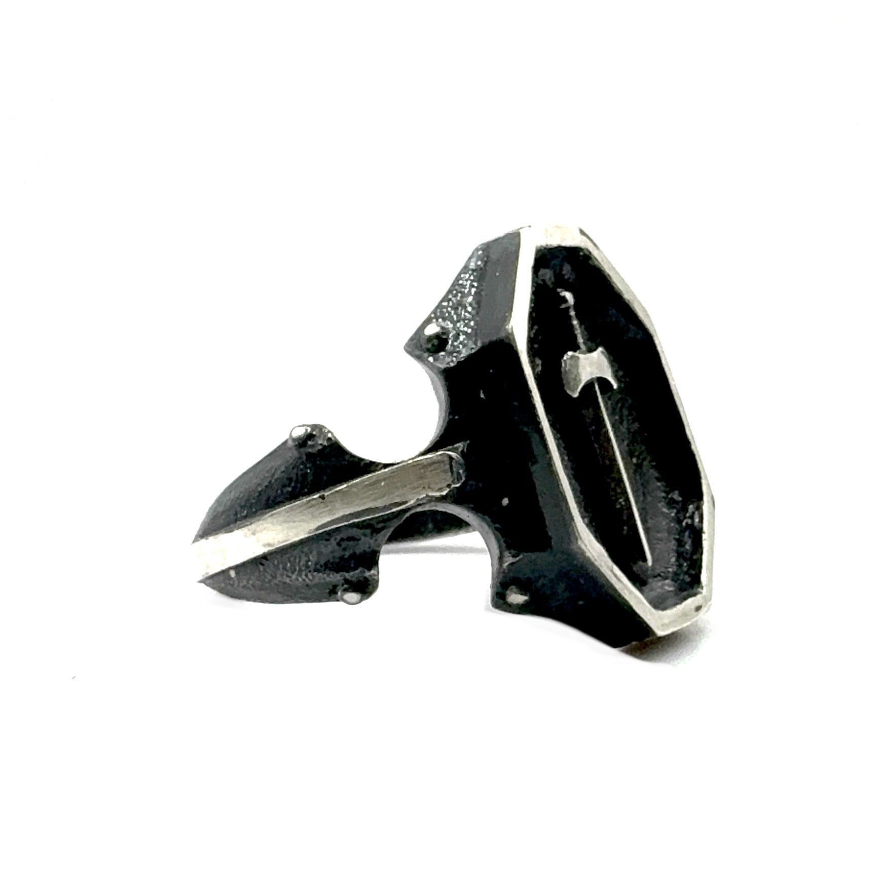 Whether you’re a lover of fantasy, a collector of unique jewelry, or simply someone seeking a piece that makes a statement, the Excalibur Signet Ring is destined for your next adventure. Oxidized dark to create stunning contrast, this piece will evolve as it's worn and will shine on the high points over time.