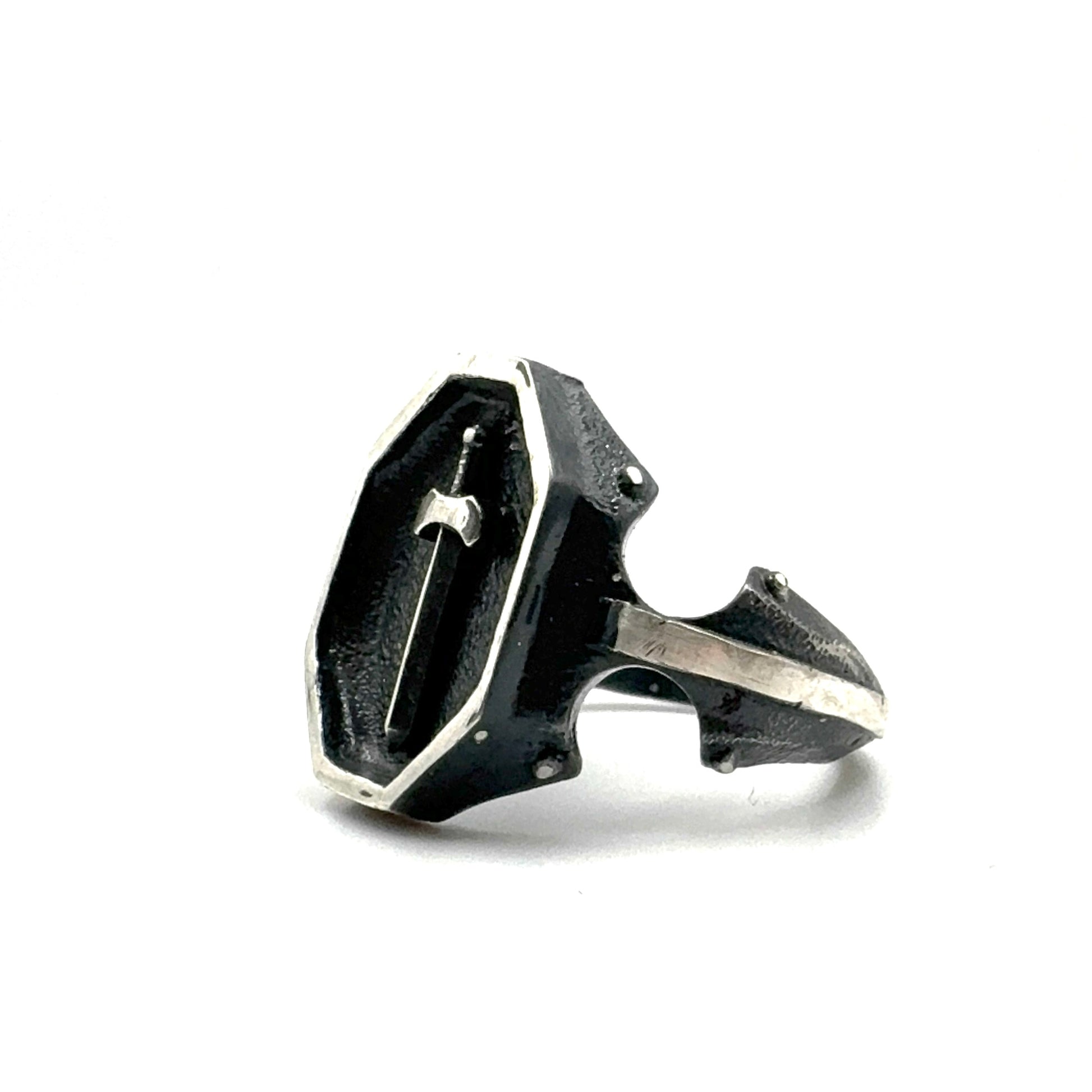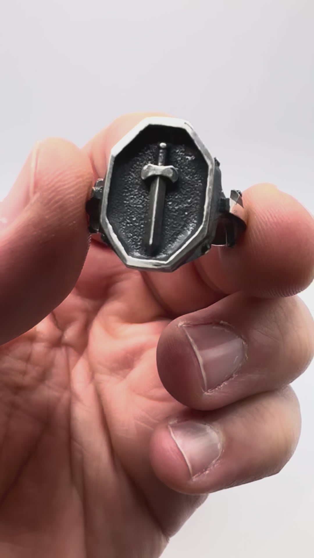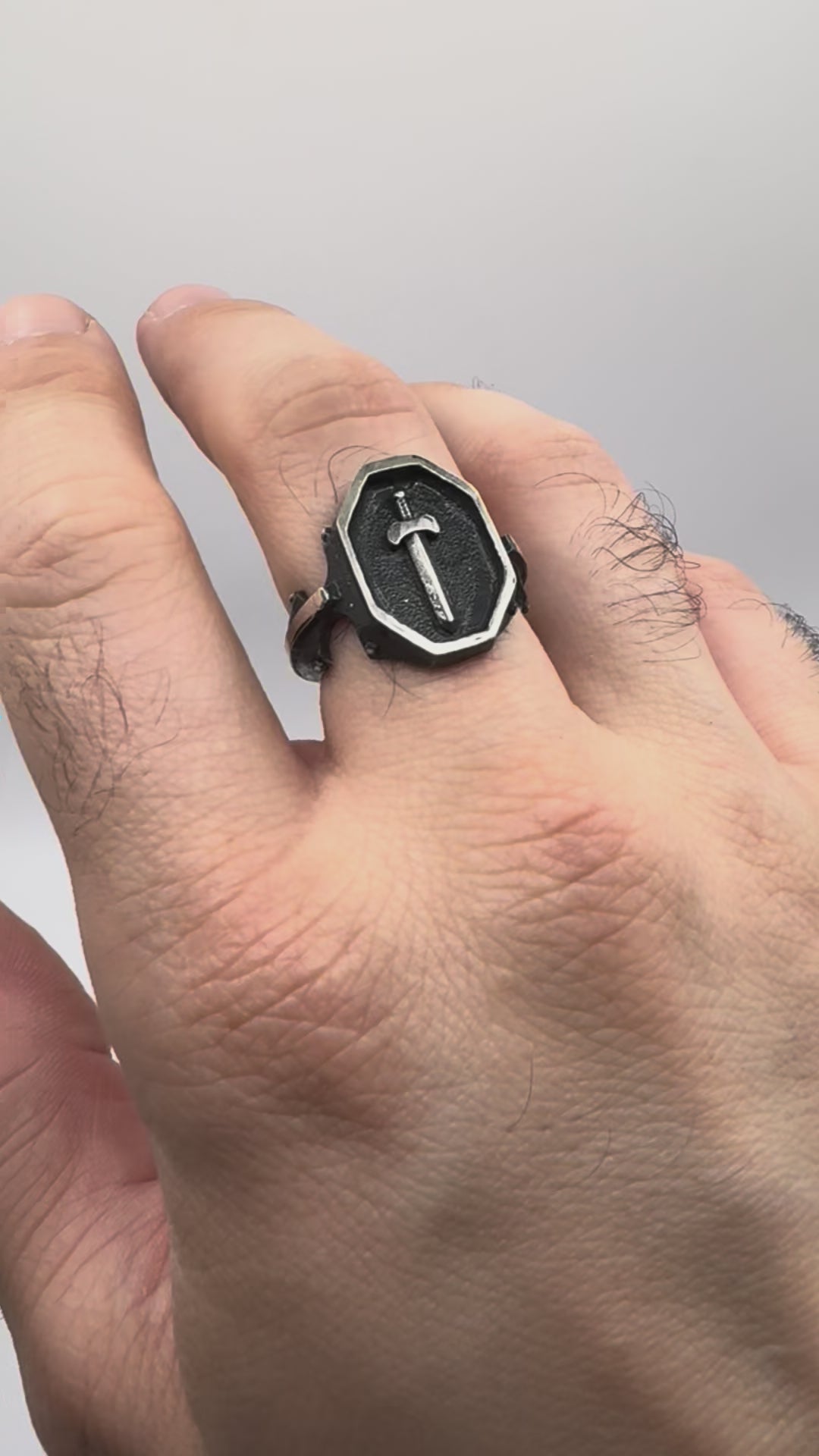 Inspired by the timeless legends of King Arthur and the sword in the stone, the Excalibur Signet Ring is crafted for those who dare to dream big and stand out. Made from sterling silver, this bold ring features a striking sword motif at its center—evoking power, mystique, and the allure of epic fantasy.