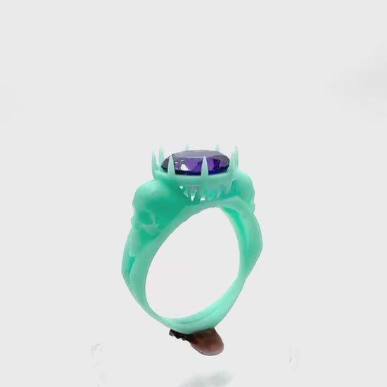 TO BE CAST - Cathedral Skull Ring With Amethyst In sterling Silver