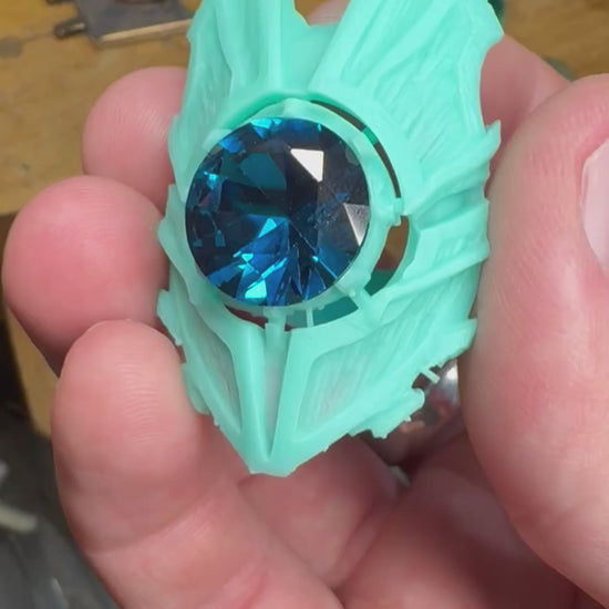 This is a part of the TO BE CAST series. Buying this ring in a designated size will reserve that size for your order. This is a one of a kind ring and will be made to order in your desired size in sterling silver and set with the blue color change spinel pictured in the setting. This version of the ring is the WAX model, BUT it will be cast in STERLING SILVER at my foundry.